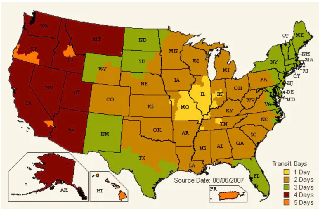 This map shows the expected time-frame for delivery if using UPS Ground Service option for your order. Service Map colors may vary due to differences in hardware and software. This map is a general representation of UPS Ground transit times. If available a tracking number will be emailed to the customer once the order has been processed. You can also view your pending orders or order history by selecting my account on the top navigation bar.