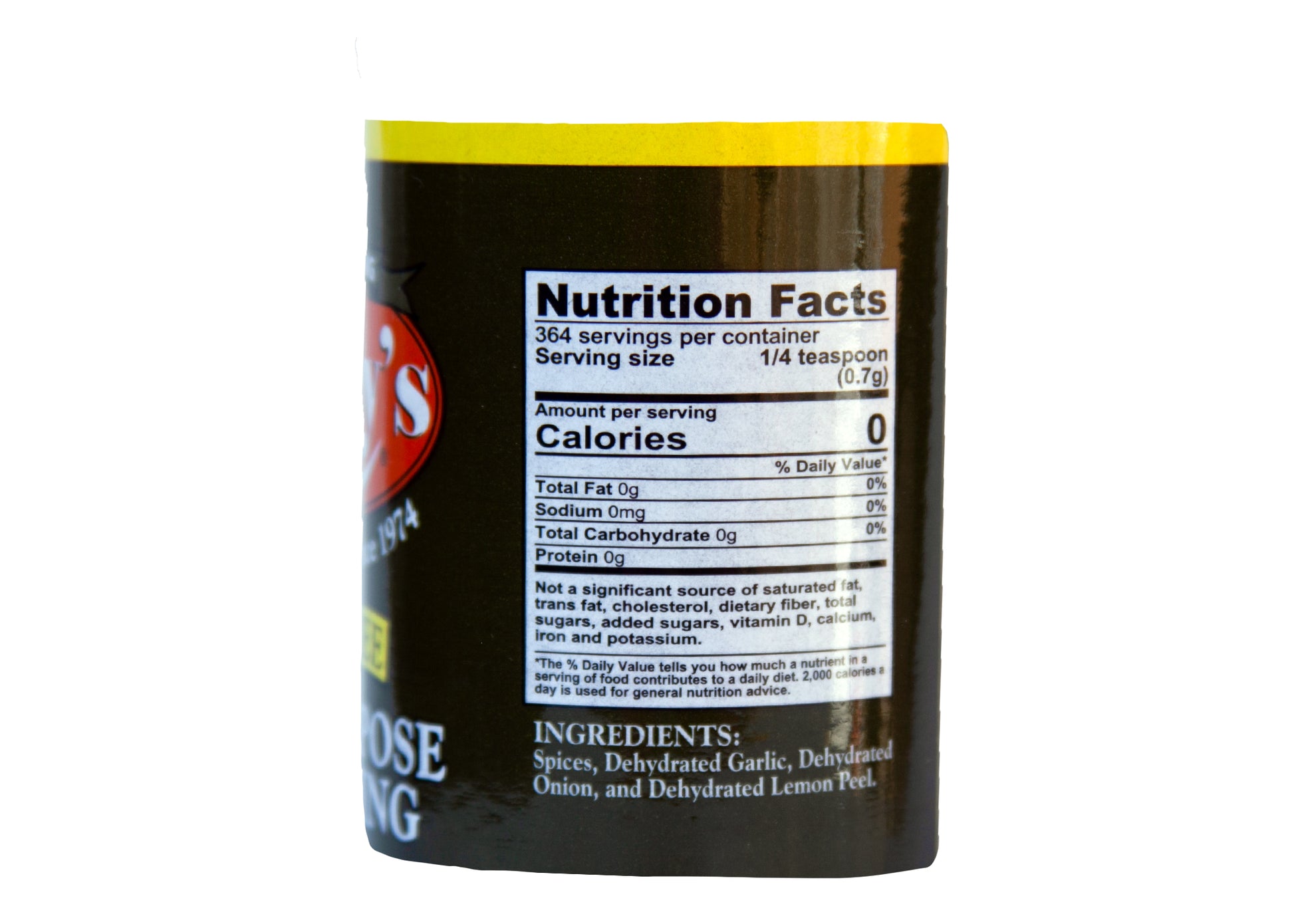 Ingredients: Granulated Onion, Black Pepper, Granulated Garlic, and other spices. No MSG.